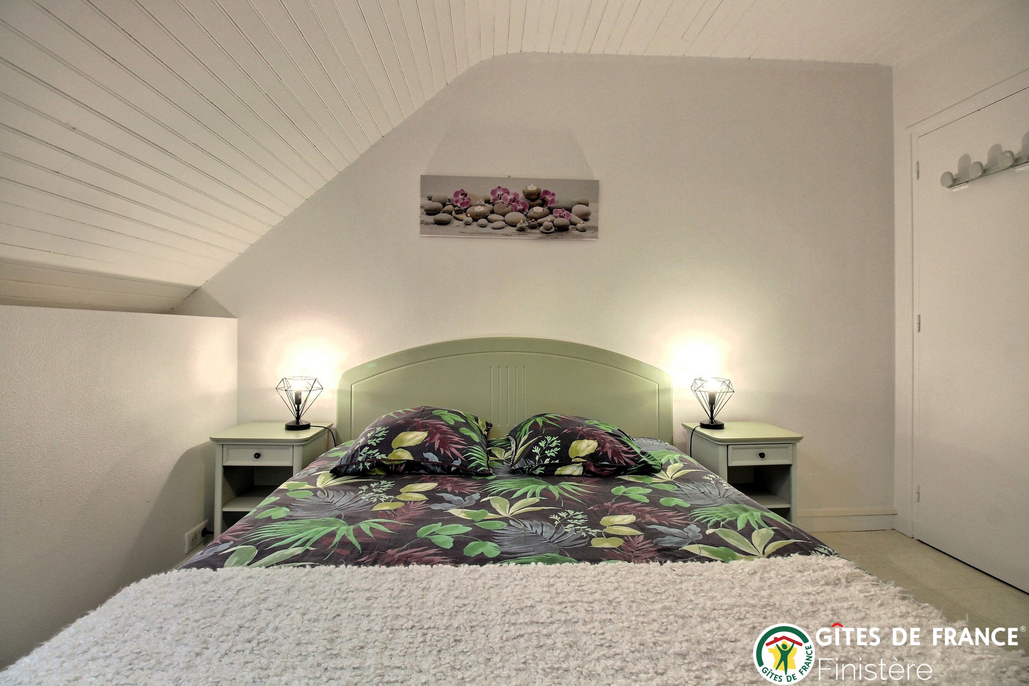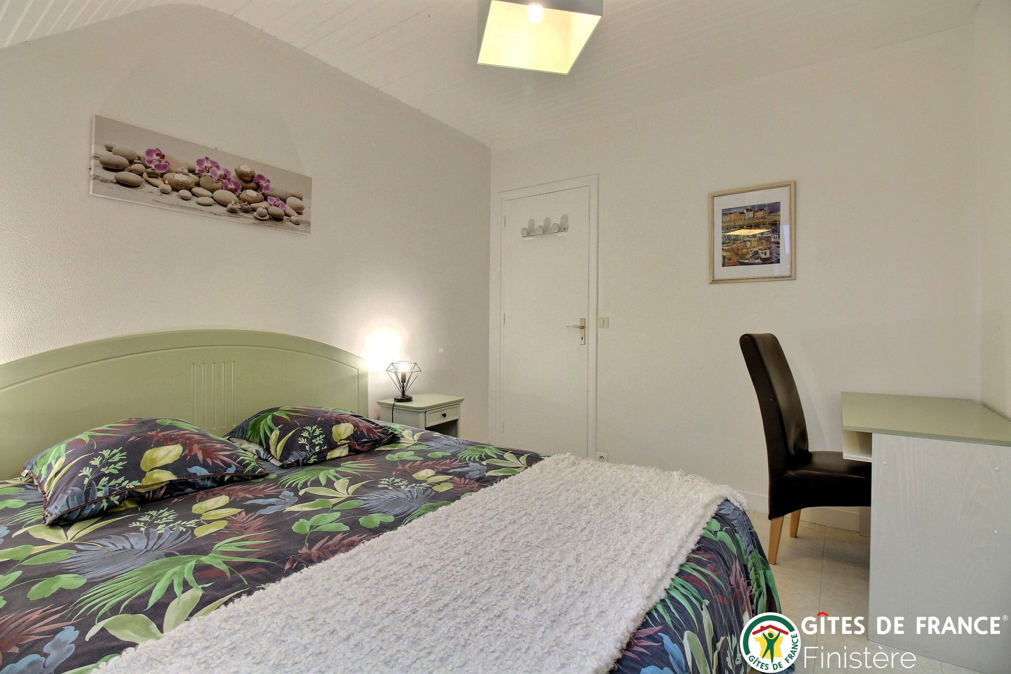 Côté chambres : une chambre avec un lit de 160 x 200 cm et une chambre avec deux lits de 90 x 190 cm. Tous nos lits sont équipés de sommiers et de matelas de qualité