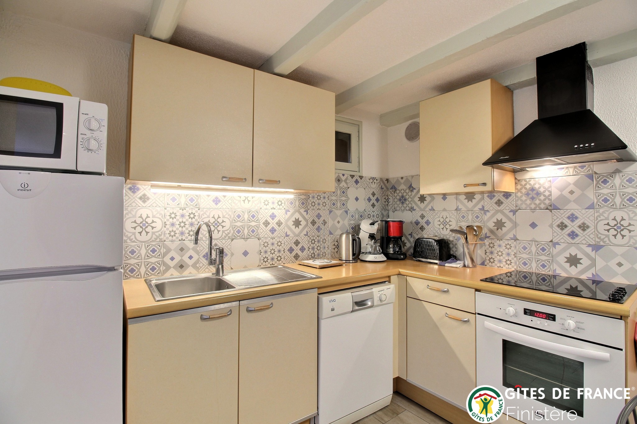 Côté cuisine : lave-vaisselle, lave linge, réfrigérateur/congélateur, four, micro-ondes, plaques vitro céramique, cocotte-minute, grille-pain, bouilloire électrique, cafetière